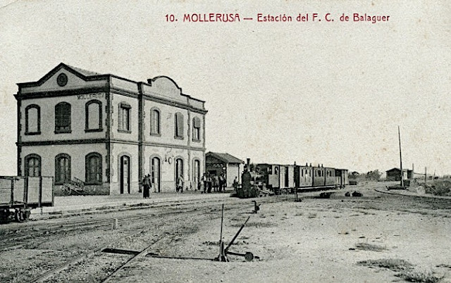En nuestro recorrido por la vía estrecha catalana, llegamos hoy a la única línea de este tipo que, con servicio de viajeros, existió en la provincia de Lérida. Se trata del ferrocarril de vía métrica que unió Mollerusa con Balaguer durante unos cincuenta años y que tuvo como objetivo básico el apoyo a la producción de azúcar que a principios del siglo XX se cultivó en las comarcas leridanas de La Noguera y L´Urgell. Era un ferrocarril de vocación claramente industrial que se vio forzado a prestar servicio público por presión de las autoridades al constatar que los habitantes de la zona lo utilizaban sin que la empresa tuviera autorización para ello.