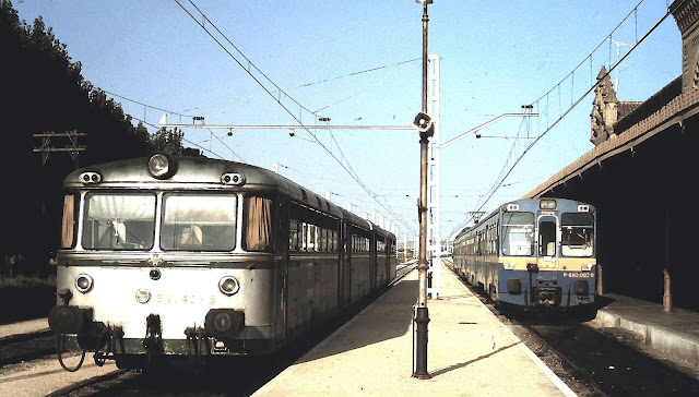 Vimos en la entrada anterior como durante la segunda mitad de los años 70 CAF y MACOSA construían sin parar coches motores y remolques de las unidades "cuatrocuarenta". Era urgente que RENFE pudiera atender con ellas a la creciente demanda de pasajeros en las líneas electrificadas. Su eficacia y su fama de comodidad hizo que fueran muy apreciadas para todo tipo de servicios, incluso de largo recorrido. Las décadas de los ochenta y noventa marcaron el cénit de su actividad...y de su reconversión. ________________________________________________________