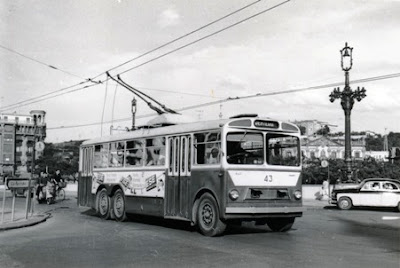 En las próximas entradas de este blog recordaremos la historia de un medio de transporte que este año cumple su 80 aniversario en nuestro país: el trolebús. Ciertamente, no se trata de un vehículo ferroviario, ya que no circula sobre carriles sino sobre el asfalto, gracias a sus neumáticos. Por otra parte, a diferencia del tren, no es un sistema guiado, ya que puede ser orientado a voluntad del conductor. Sin embargo, los trolebuses mantienen algunos elementos en común con el ferrocarril, como es el hecho de ser un sistema cautivo, ya que, al menos en el pasado, en todo momento debía estar físicamente unido a su infraestructura mediante los troles para poder funcionar, aunque esta limitación ha sido superada por las versiones más modernas. Además, utilizan la tracción eléctrica, al igual que los tranvías, lo que lo convierte en uno de los medios de transporte urbano más limpios y medioambientalmente más eficientes.