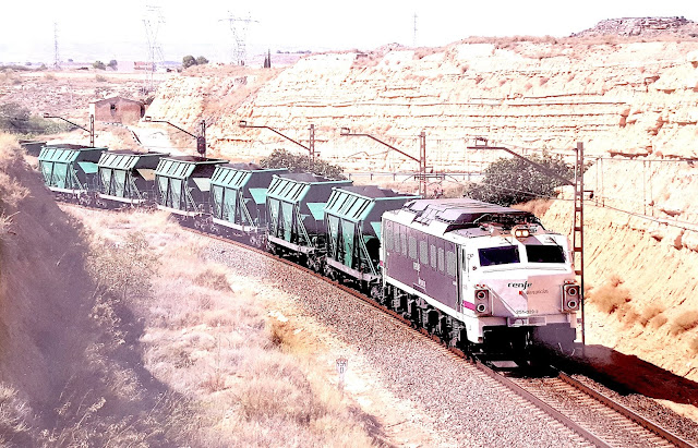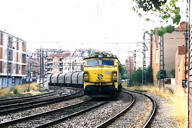 A principios de los 90 toda la serie fue asignada a la recién creada Unidad de Negocio de Tracción. Fue entonces cuando empezó el dichoso cambio de librea. Mi opinión es que ese negro y amarillo nunca favoreció a ninguna locomotora, pero desde luego, menos que a ninguna, a las 352 y, por supuesto, a las 251.