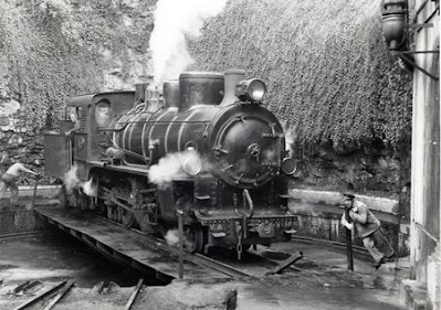 La construcción de este ferrocarril tardío, en una época en la que cada día se hacía más patente la competencia de los modernos transportes mecánicos por carretera se iniciaron en 1929 bajo la dirección del ingeniero Francisco Cabrera Warleta y se vieron ralentizadas por el conflictivo periodo histórico que España vivió en aquella época, en un contexto de crisis económica mundial iniciada tras el crack bursátil de Nueva York que tuvo lugar en el otoño de ese mismo año y que coincidió en el tiempo con una grave crisis política e institucional en España, con la caída de la Dictadura de Primo de Rivera, el fin de la monarquía alfonsina y la proclamación de la República. Pese a las dificultades, la Sociedad Vasco-Asturiana pudo inaugurar su nueva línea en dos etapas, la primera entre Ujo-Taruelo y Cabañaquinta, abierta el 15 de julio de 1934 y la segunda, hasta Collanzo, hace ahora 86, el 27 de enero de 1935. Con el fin de reducir al máximo los gastos, esta sección fue equipada con locomotoras de vapor adquiridas de ocasión a la Compañía de los Ferrocarriles Vascongados, en concreto, seis de sus famosas máquinas articuladas según el sistema Engerth del tipo «Euzkadi», construidas por Krauss (Munich) en 1920 y que habían quedado fuera de servicio en su línea de origen tras su electrificación en 1929.