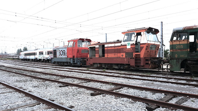 | Las cuatro locomotoras 309 adquiridas por FESAVA a la espera de su puesta a punto en febrero de 2018. (foto: Juan J. Romero Rioja/CARRIL) |