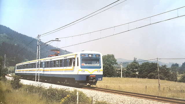 La acción más importante desarrollada en esta época para conseguir una mejora sustancial en los servicios fue la adquisición de las unidades eléctricas de la serie 3500 a las que ya dediqué esta entrada del blog. Recordemos que, a mediados de aquellos años setenta, FEVE acometió una mejora sustancial de los servicios electrificados de cercanías en las principales ciudades de la Cornisa Cantábrica. La idea era disponer de unidades eléctricas, en principio con disposición coche motor/coche remolque con cabina, que contaran con nuevas tecnologías y supusieran un mayor confort para los pasajeros. El contrato por un total de 15 trenes de este tipo fue adjudicado a CAF que entregó los primeros en 1977 y los últimos en 1980.