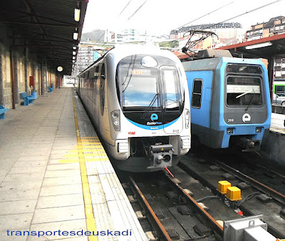 | Dos unidades de la serie 200 en la estación bilbaína de Atxuri (foto tomada de la página web de Transportes de Euskadi) |