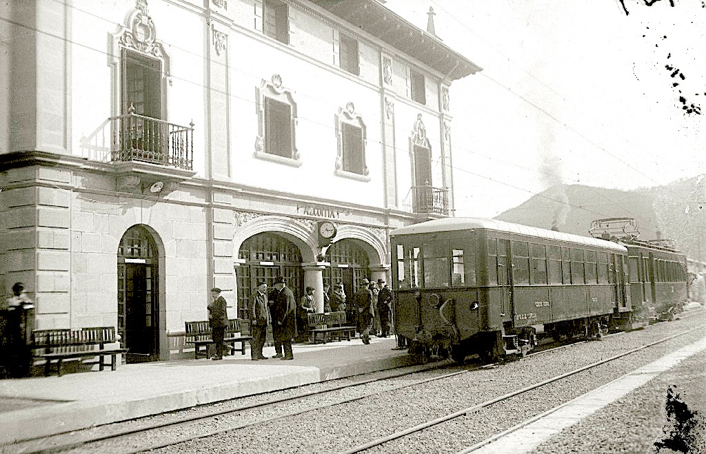 | Al parecer, en enero de 1926 se llevaron a cabo algunas pruebas de los automotores en San Sebastián, probablemente en relación con la circulación por la ciudad del tren real con motivo de la inauguración del ferrocarril. A ellas pertenece esta imagen (foto: Archivo Euskotren/Museo Vasco del Ferrocarril) |