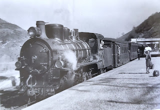 | La V.A. Nº 14 detenida en Ujo-Taruelo con un tren de Oviedo a Moreda (L. G. Marshall) |