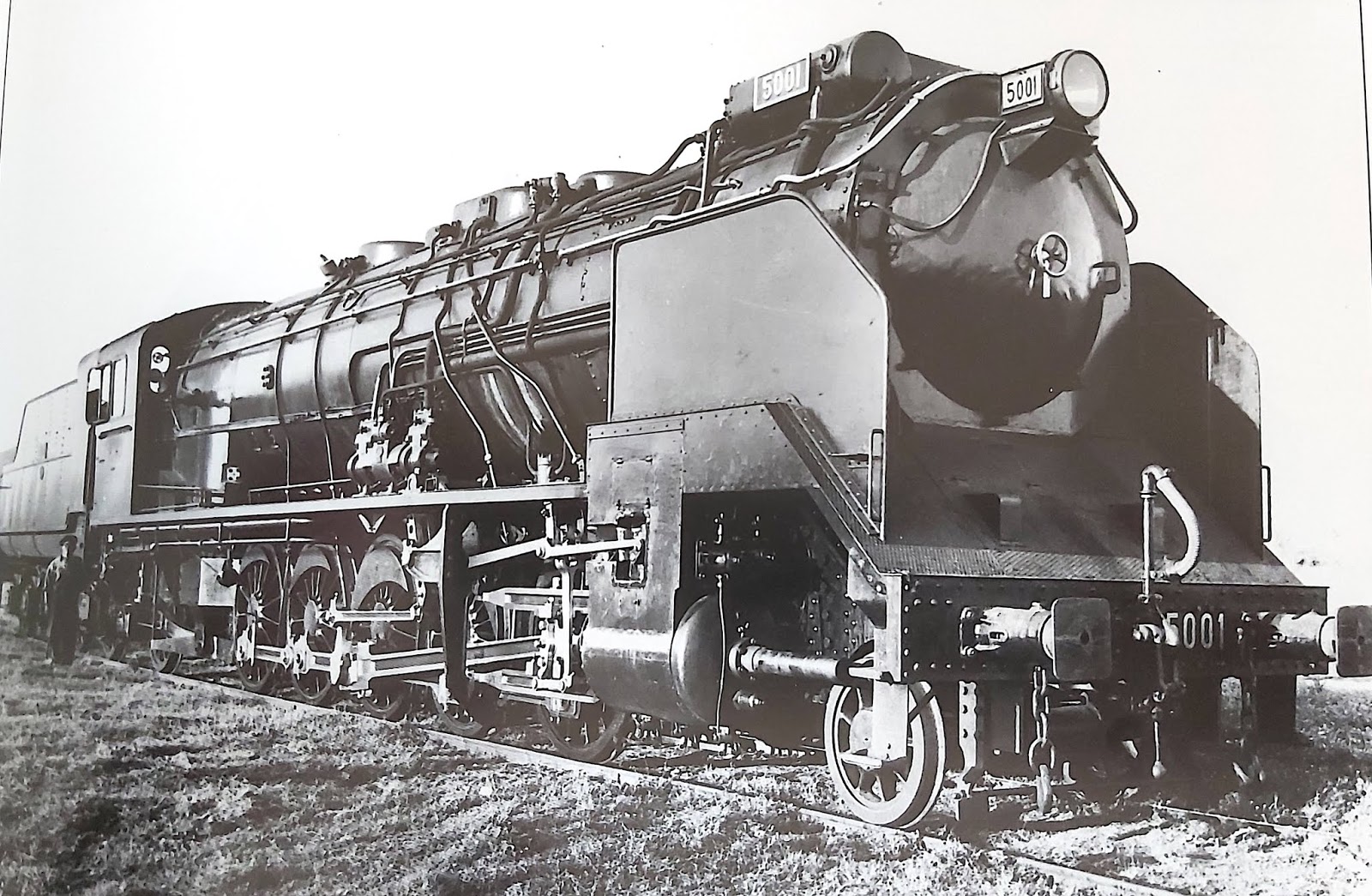 Impresionante frontal de la 5001. Aunque conservaba la numeración de Norte figuraba ya bajo la adscripción de RENFE. Al parecer las cuatro primeras salieron con esta rotulación cambiando en las posteriores a la nueva numeración de RENFE (MTM) El 6 de octubre de ese año de 1942 tuvo lugar su presentación oficial en Barcelona:
