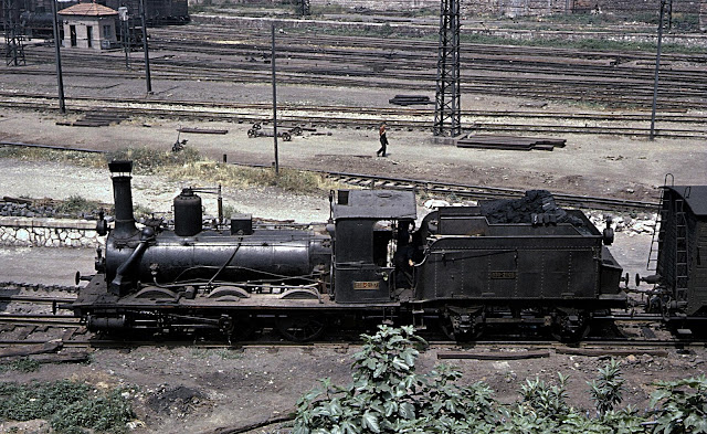 | La 030-2174 (ex 1350 "El Darro") construida por Schneider en 1862 y fotografiada por Norman Glover en Venta de Baños en 1963 De nuevo la 2174 en Venta de Baños y también en 1963 (John Champion)