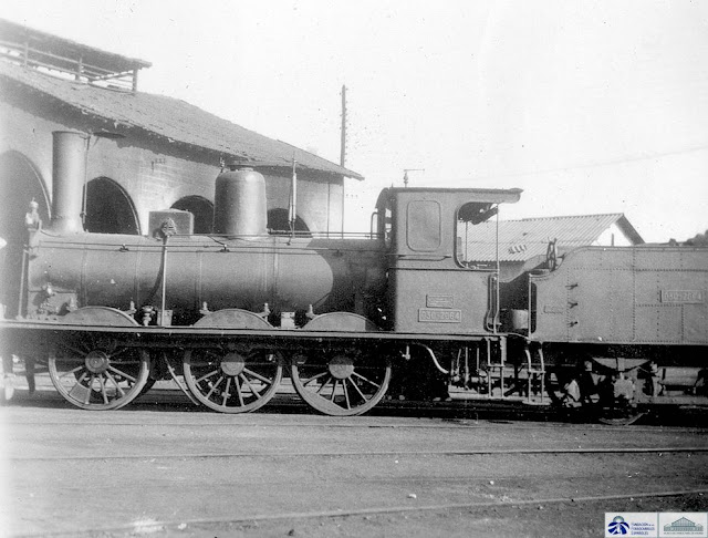 La Compañía de los Ferrocarriles Andaluces, cuya creación tuvo lugar en 1877, fue el resultado de la fusión de otras más pequeñas entre la que se encontraba la Sevilla-Jerez-Cádiz (SJC). Ésta, a su vez, surgió unos años antes, en 1860, de la unión de otras tres pequeñas compañías: Sevilla a Jerez, Puerto de Santa María a Cádiz y Jerez a El Trocadero. Pues bien, cuando se constituyó, cada una de ellas aportó su parque de locomotoras -tipos 111, 120 y 021- tal como vimos en una entrada anterior. En cualquier caso se estimó oportuno ampliar la dotación y para ello se cursó un pedido a la factoría francesa Schneider de Le Creusot de trece nuevas locomotoras: cinco de ellas de tipo 120 para viajeros y ocho tipo 030 para servicios mixtos. Las primeras se recibieron en 1859 y ninguna de ellas sobrevivió hasta la creación de la RENFE. Las segundas entraron en servicio en 1860, algunas sí lo hicieron y son el objeto de esta entrada.