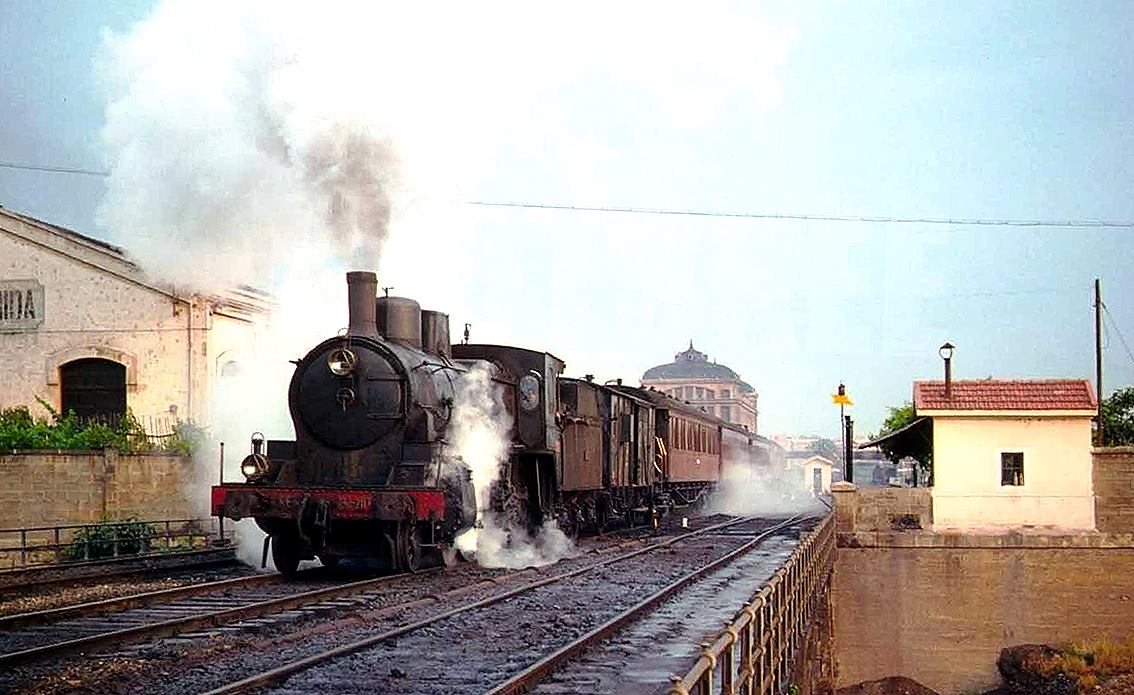 | Valencia, estación del Norte. Una locomotora de esta serie conduce una composición de coches de dos pisos en algún servicio de cercanías en mayo de 1961. La imagen es todo un museo vivo: al fondo a la izquierda un automotor Maybach y en la vía anterior una 1800 desplazada seguramente desde su zona habitual para colaborar en la tracción de trenes naranjeros, y tras ella un automotor Ganz pequeño (AHF/MFM. Autor Karl Wyrsch) |