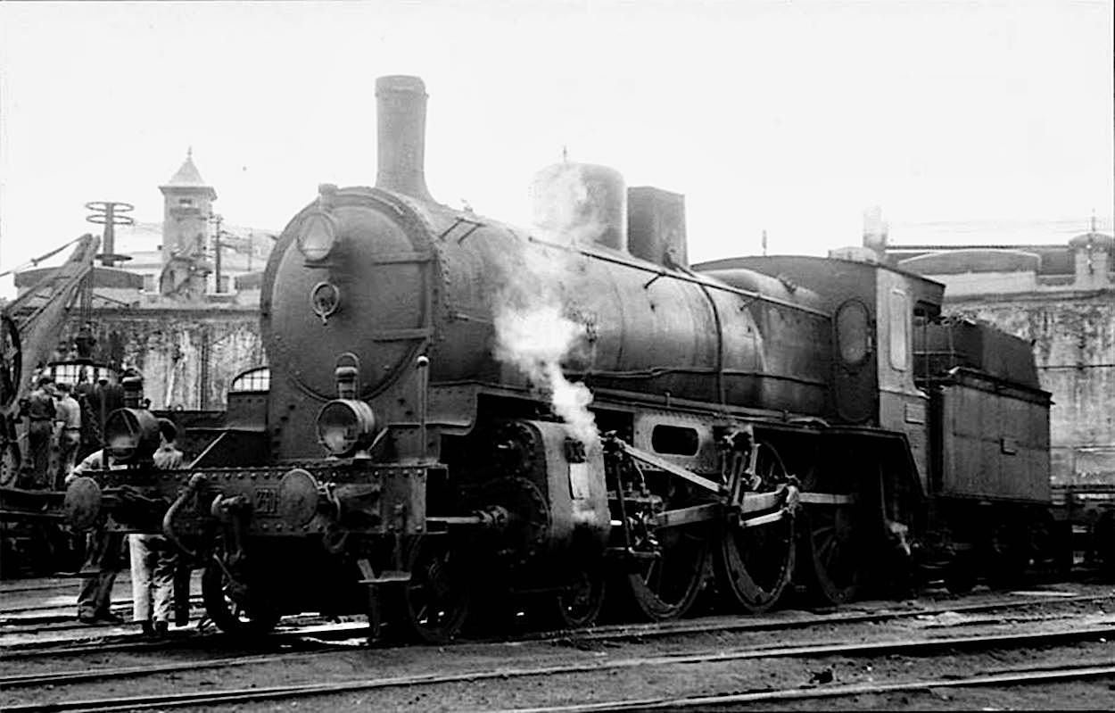 En una imagen mucho más moderna tomada en Tarragona en 1961 aparece la 230-2075 (ex Norte 1980), primera de la serie (Ch. Firminger)