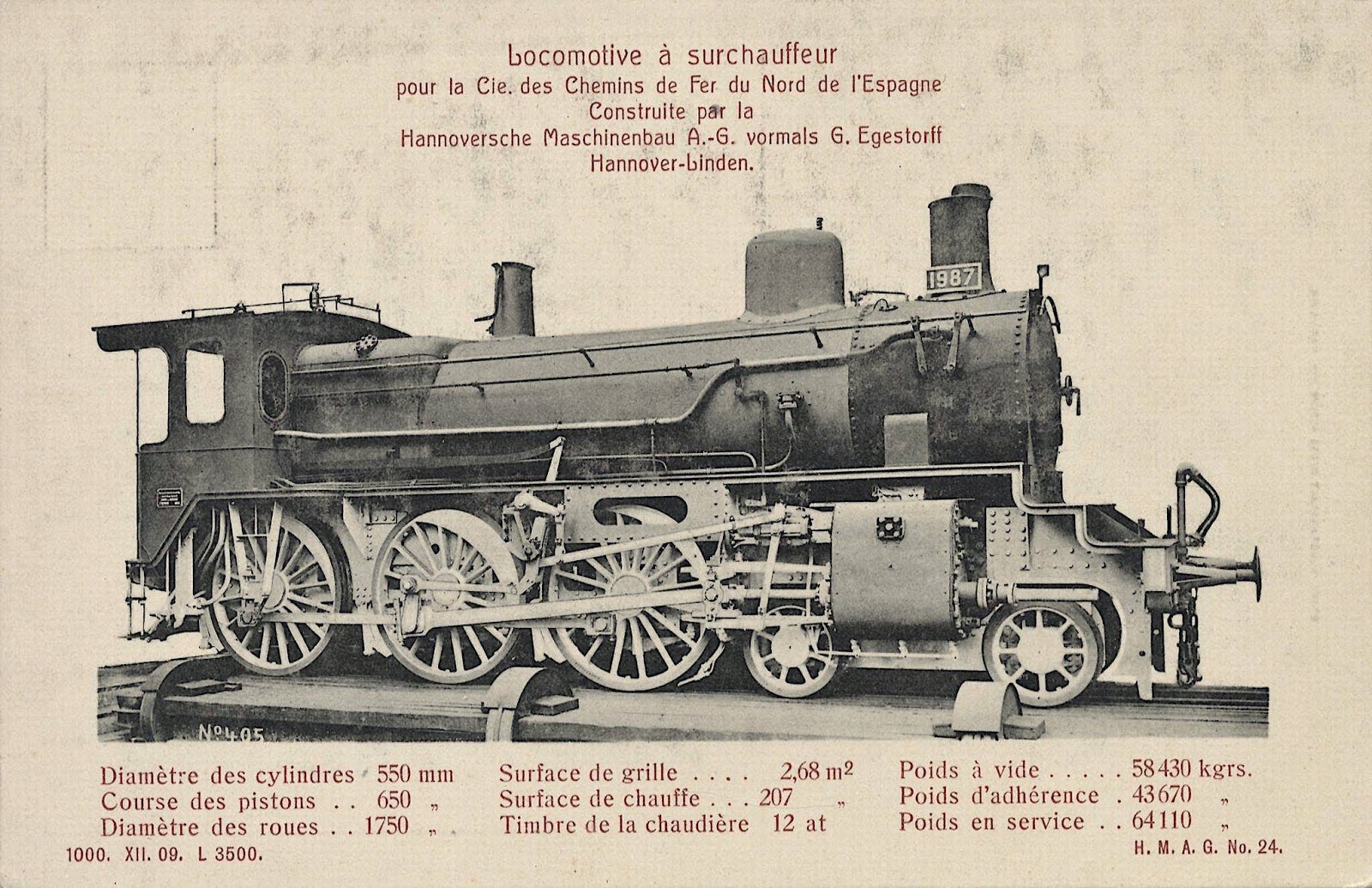 Como hemos visto en entradas anteriores, nada más comenzar el siglo XX, las principales compañías ferroviarias españolas decidieron adquirir locomotoras tipo 230 para hacer frente a la tracción de trenes cada vez más pesados. De este modo, en 1901, MZA empezó a recibir sus primeras locomotoras de este tipo que constituirían su serie 651-680 (230-4001 a 4030 en RENFE). De forma inmediata lo hizo Norte iniciando su serie 1900 con las 1901 a 1928, las "1900 pequeñas" que en RENFE fueron las 230-2031 a 2058. En 1903 lo hizo Andaluces con su serie 300, en RENFE 230-4111 a 4143. Y en 1904 Norte comienza a recibir su primer lote de "1900 grandes", integrado por 30 locomotoras que fueron también incluidas en la serie 1900 como 1950 a 1979 y que en RENFE, se transformaron en las 230-2001 a 2030. Una vez recibido este lote, Norte continuó hasta 1913 con la adquisición de más locomotoras de este tipo hasta un total de sesenta. A éstas últimas va dedicada la entrada