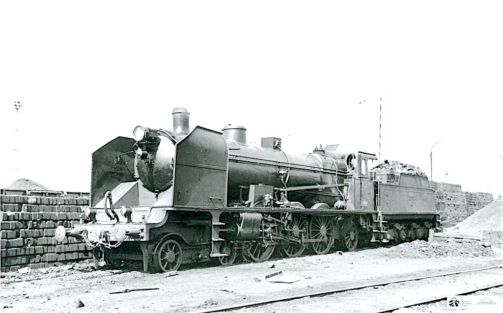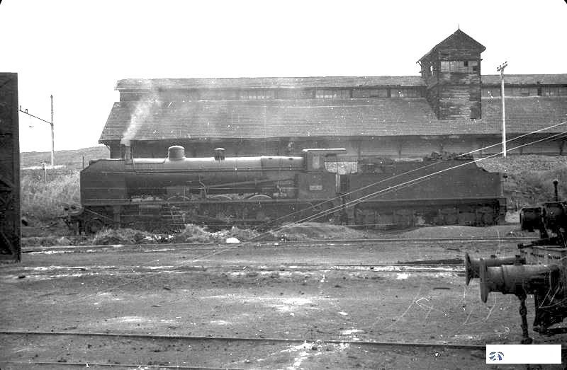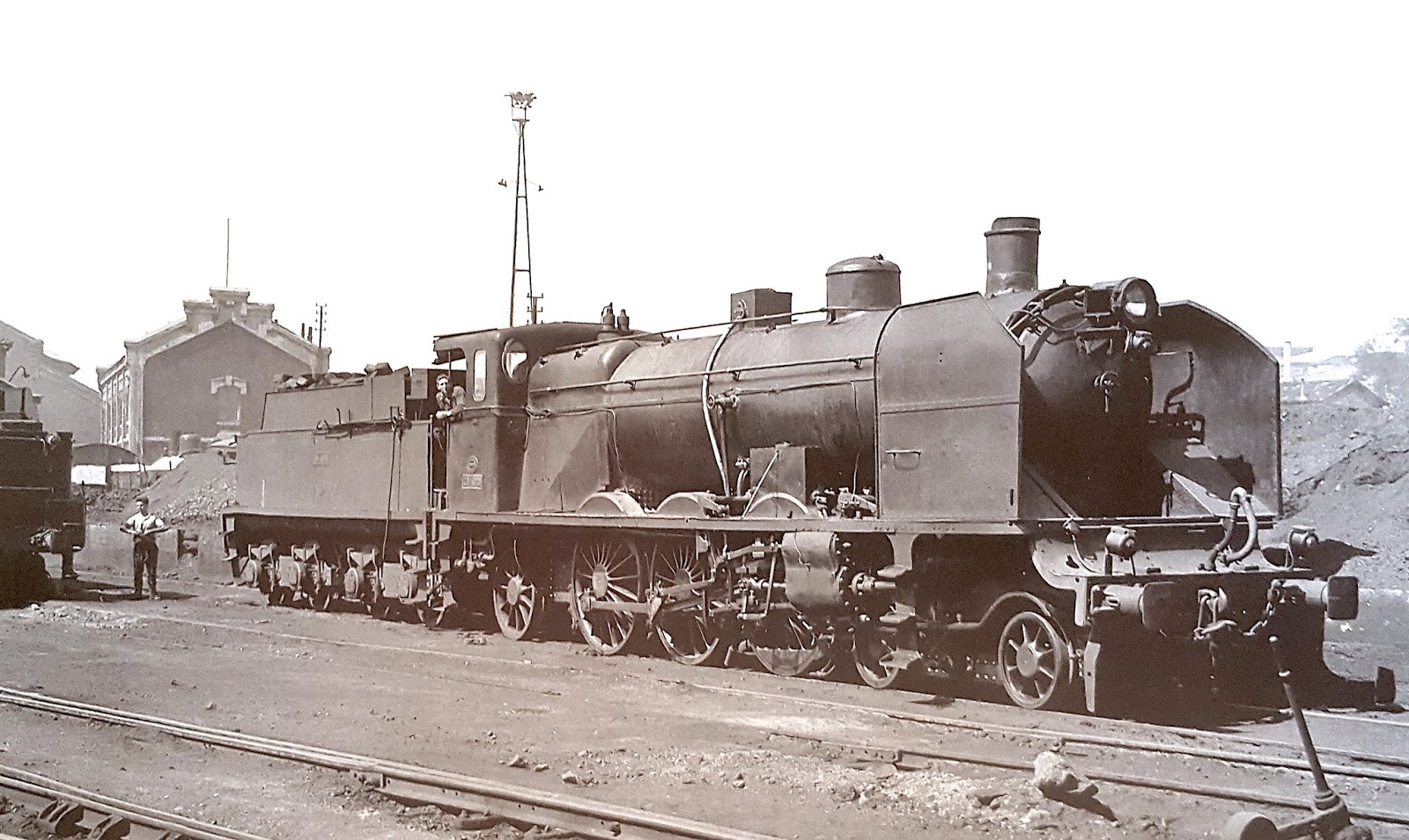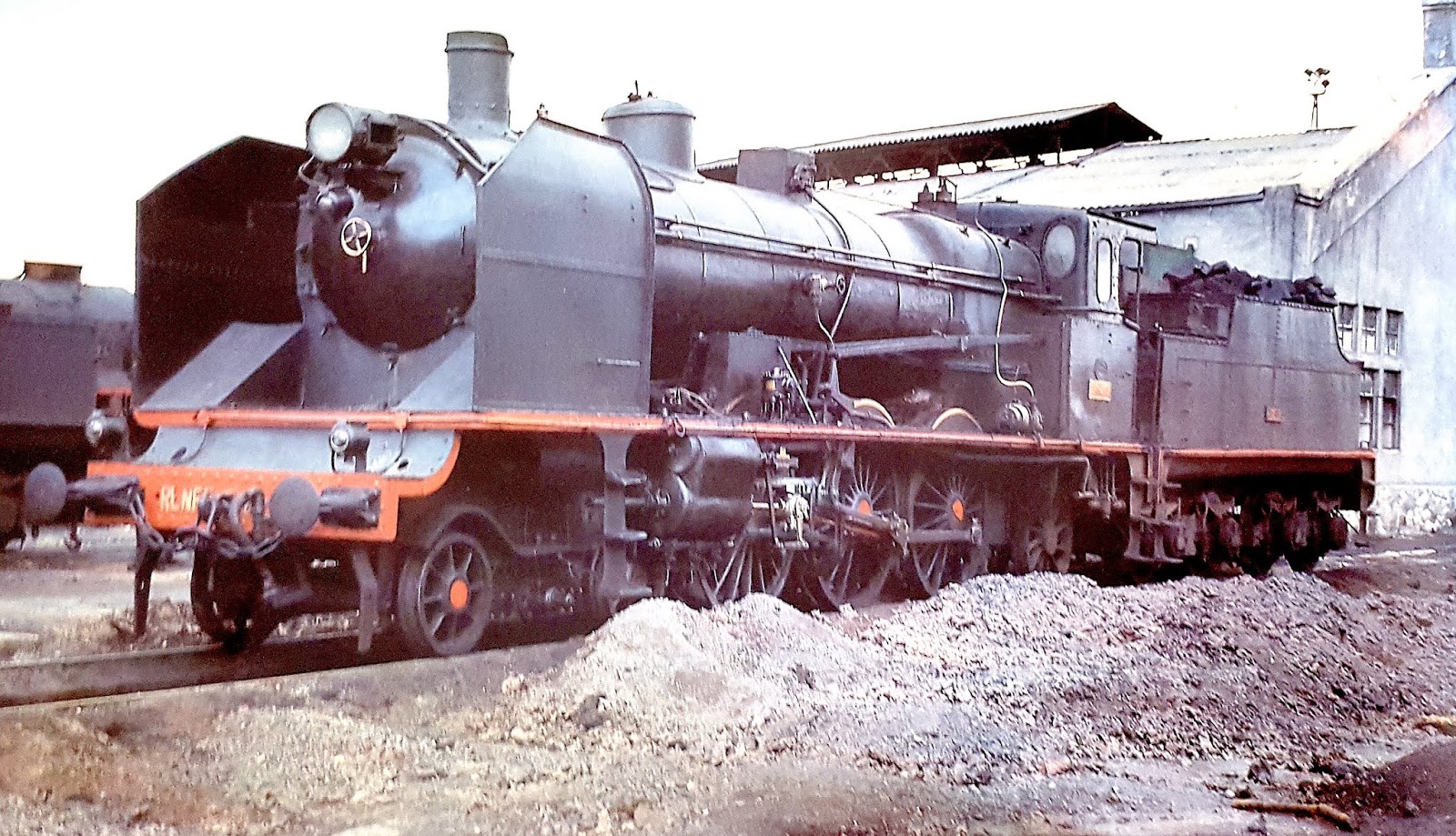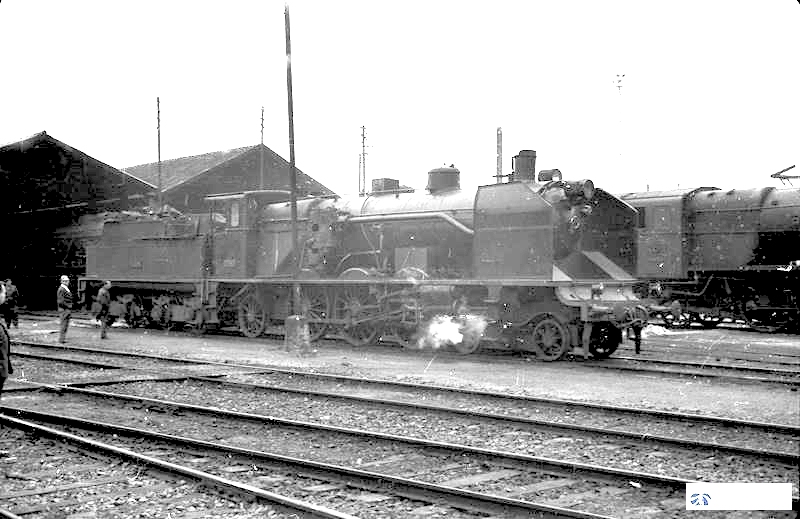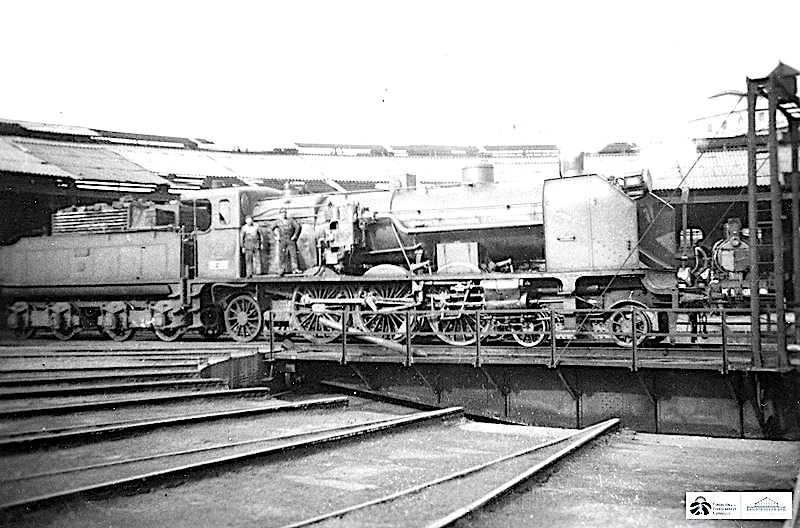 | Otra foto tomada por Gustavo Reder de una locomotora de esta serie muy probablemente en el depósito de Miranda de Ebro(AHF/MFM) |