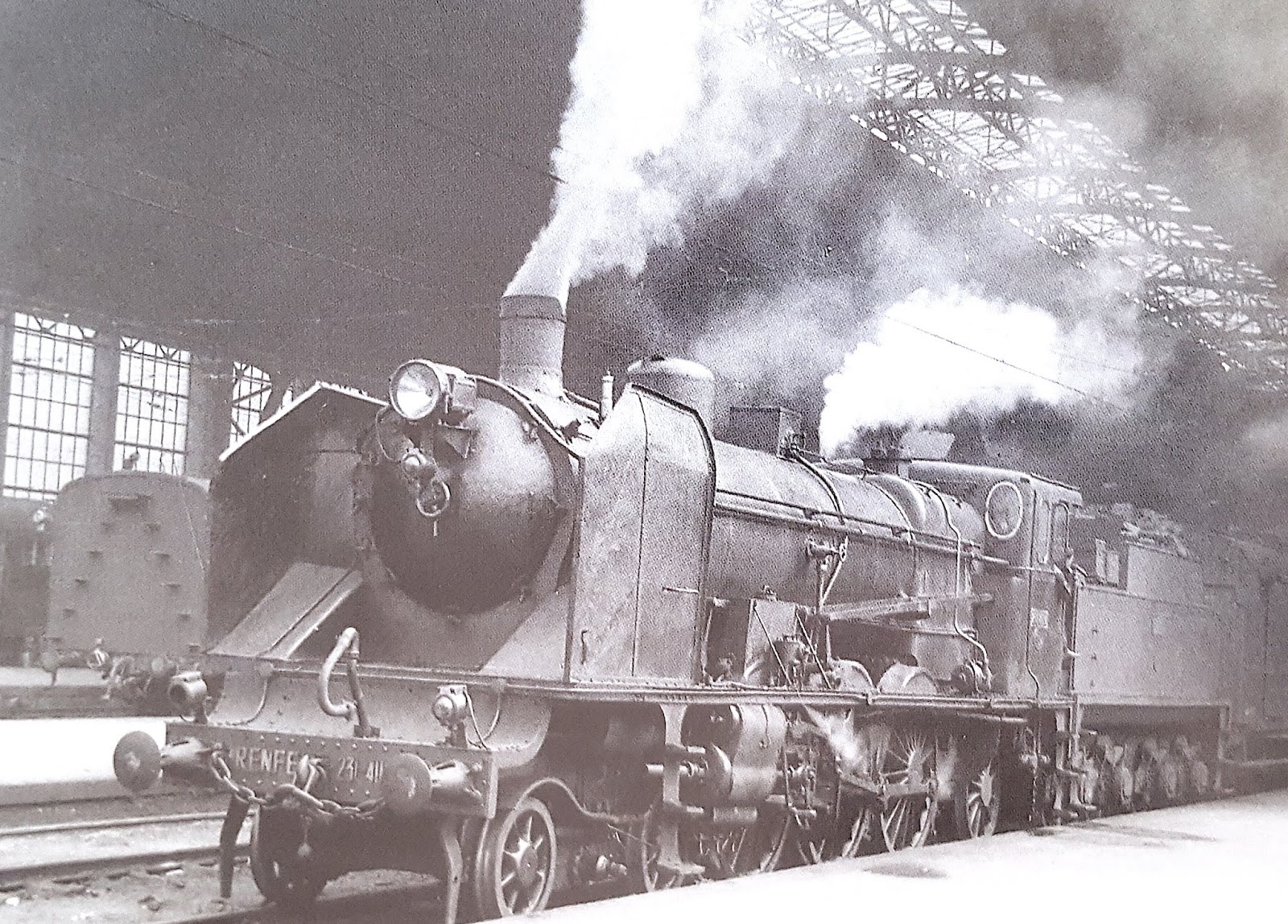 La 3011 en la estación de Zaragoza en 1937 en cabeza de un tren "imperial" (autor desconocido/cortesía J. A. Méndez Marcos)