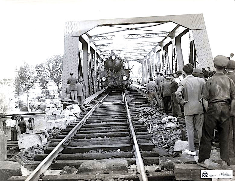 | Inaugurando un puente sobre el Duero cerca de Viana, en la provincia de Valladolid (AHF/MFM. Autor: Vicente Garrido) |