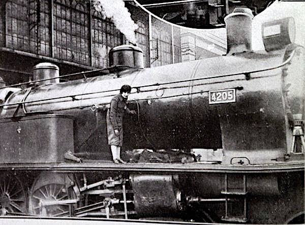 La 4201 en reparación en los talleres barceloneses de San Andrés en 1919 (Arnau Izard/AFCEC/ cortesía J.A. Méndez Marcos)