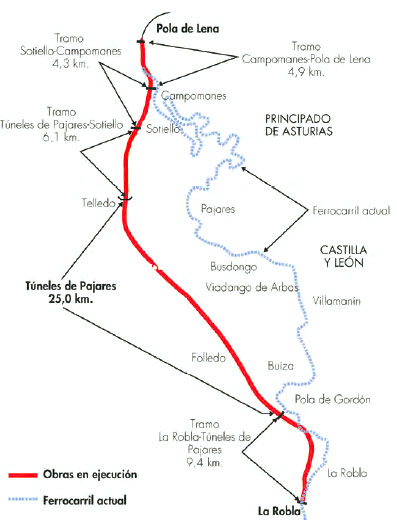 Adif Alta Velocidad ha aprobado la adjudicación de las obras de construcción y mantenimiento de las instalaciones de protección civil y seguridad en los túneles de la Variante de Pajares -tramo La Robla-Pola de Lena, en la línea León-Asturias, así como el suministro y transporte de desvíos ferroviarios y aparatos de dilatación polivalentes para el mismo tramo, correspondiente al Corredor Norte-Noroeste de alta velocidad.