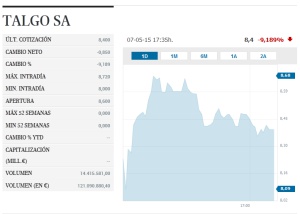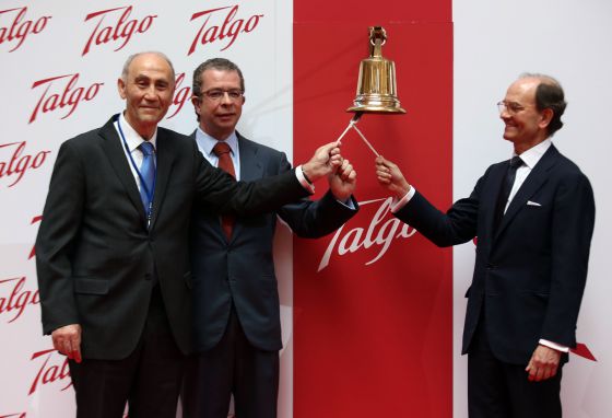Talgo ya es una empresa cotizada. Tras años preparando su salto al parqué, el fabricante de trenes español por fin ha celebrado su puesta de largo en el Palacio de la Bolsa de Madrid. Sin embargo, el estreno ha sido amargo: nada más tocar la campana, a las 2 de la tarde, sus acciones se han desplomado. Mientras el presidente de la compañía daba su discurso, han llegado a perder más del 12%. Finalmente, han cerrado en 8,4 euros, con una bajada del 9,1% con respecto a su precio de salida, fijado en 9,25 euros.
